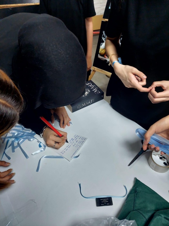 Ayrıca öğrencilerimiz, Filistin’e destek ve dayanışmayı simgeleyen mavi kurdeleleri takarak etkinliğe katılım sağladı. Bu sembolik davranış, barışa ve insani değerlere bağlılığın bir göstergesi oldu.