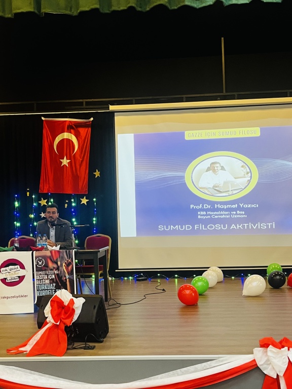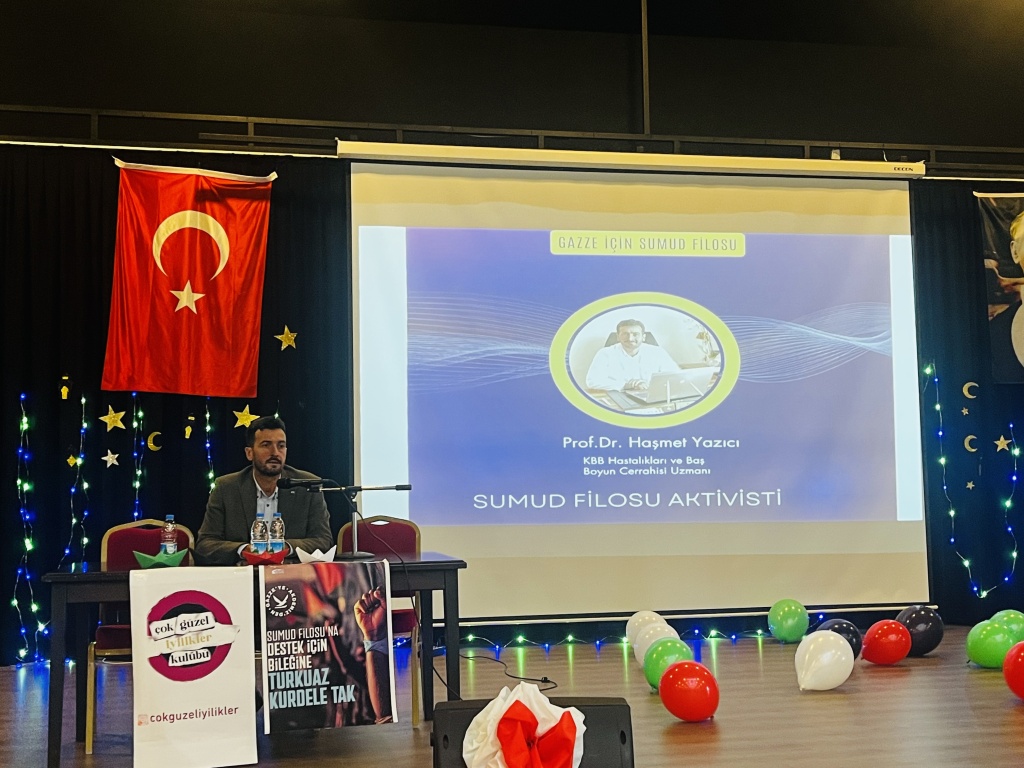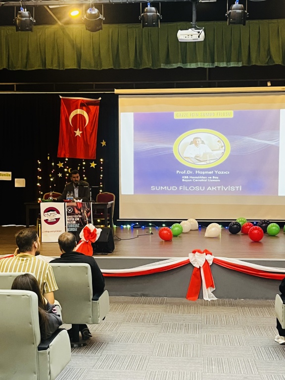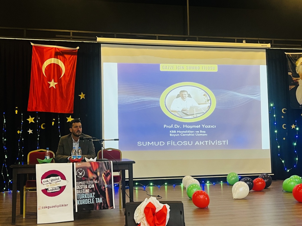 Prof. Dr. Haşmet Yazıcı, Gazze ablukasını kırmak ve insani yardım ulaştırmak amacıyla yola çıkan bu tarihi filoda yaşadığı zorlu ve cesur anları, uluslararası sularda maruz kaldığı muameleyi ve Filistin halkının mazlumiyetini birinci ağızdan öğrencilerimize aktardı.